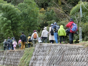 深まる秋、ちょうど紅葉が見ごろとなった里山のふもとをスタートし、途中7か所で地元の方から過去の災害の話、地名の由来、信仰の歴史などをお聞きしながら、老若男女ちびっこから80代までがポカポカと暖かい小春日和にゆっくりと散策しました。参加者:36名(女性 11名、男性 25名)