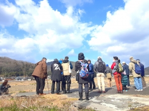 蝋梅香る粟井地域、タナゴ類、猛禽類、ホタルなど、大井・粟井地区に生息する特徴的な動物をテーマに、岡山の自然を守る会、日本野鳥の会、岡山野生生物調査会の方々を講師にお迎えしました。16名が午前のフィールドワークに、19名が午後の講義・意見交換に参加しました。